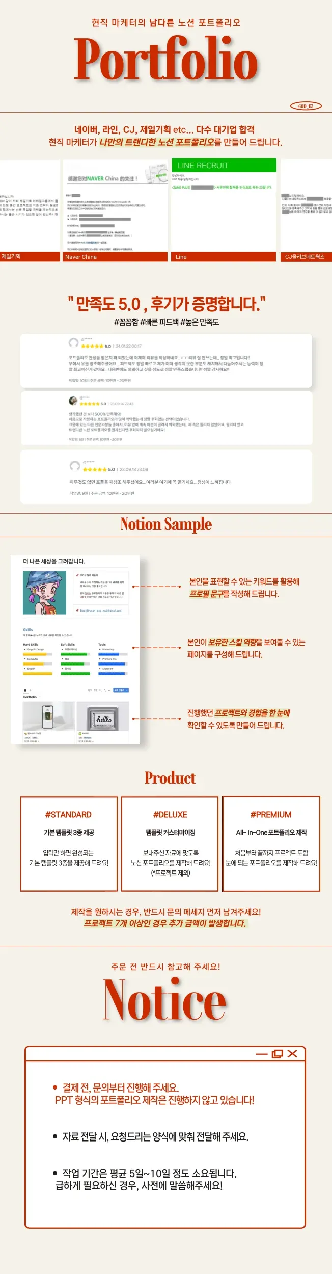 목표: 다양한 산업·직무 지원자를 대상으로 취업·이직 성공률 향상을 위한 노션 포트폴리오 제작
